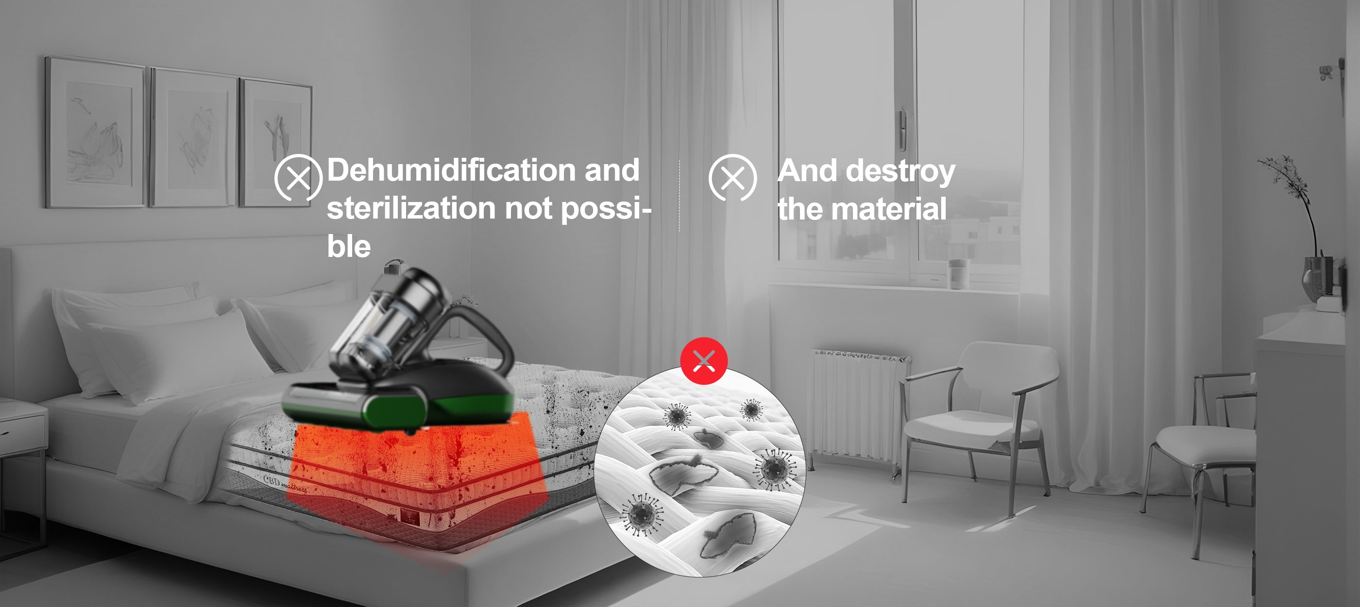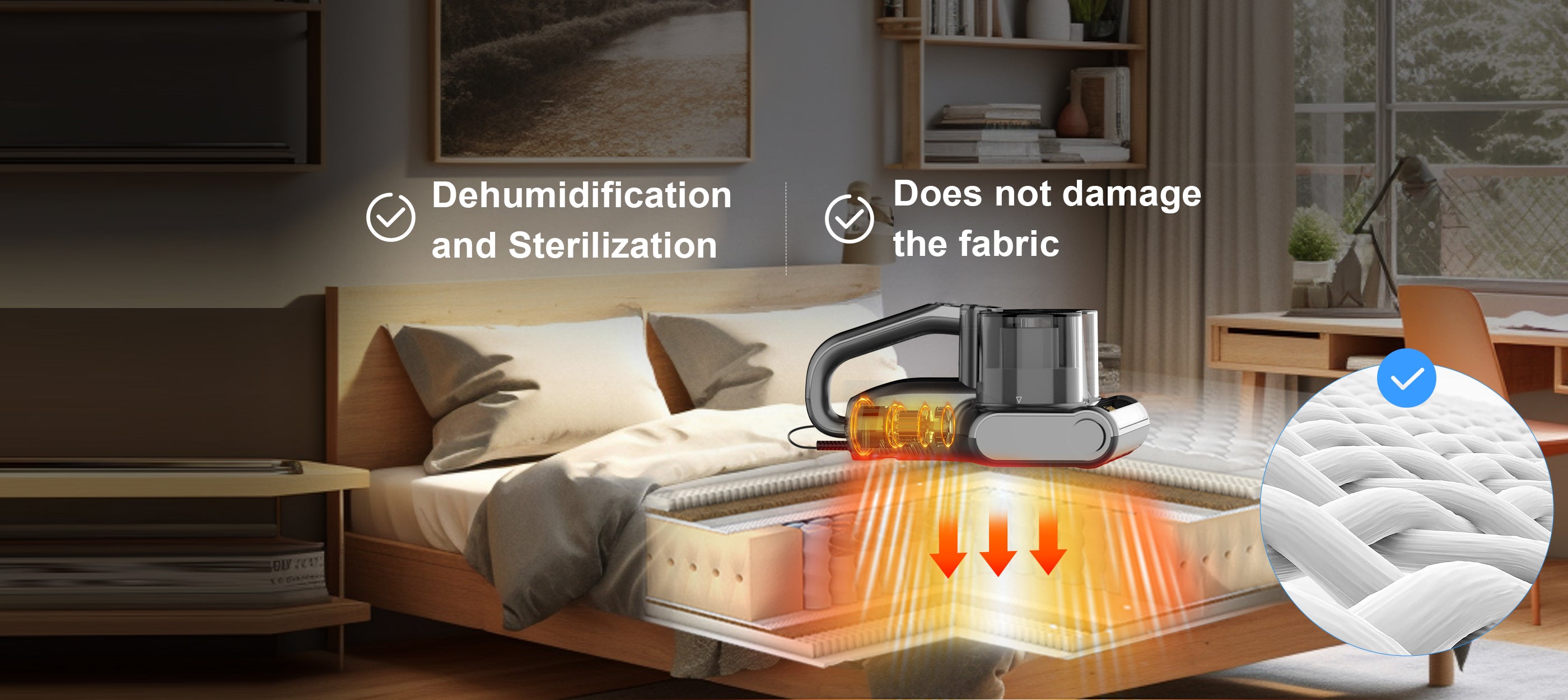 This mattress mite removal vacuum cleaner can be heated to 60℃. Under such high temperatures, mites can be efficiently killed and the moisture in the mattress can be removed. It can effectively reduce the activity of mites and dehumidify the mattress to prevent mites from breeding in a humid environment. Thus, it creates a dry and refreshing sleeping environment for you and makes your sleep more comfortable and healthy.